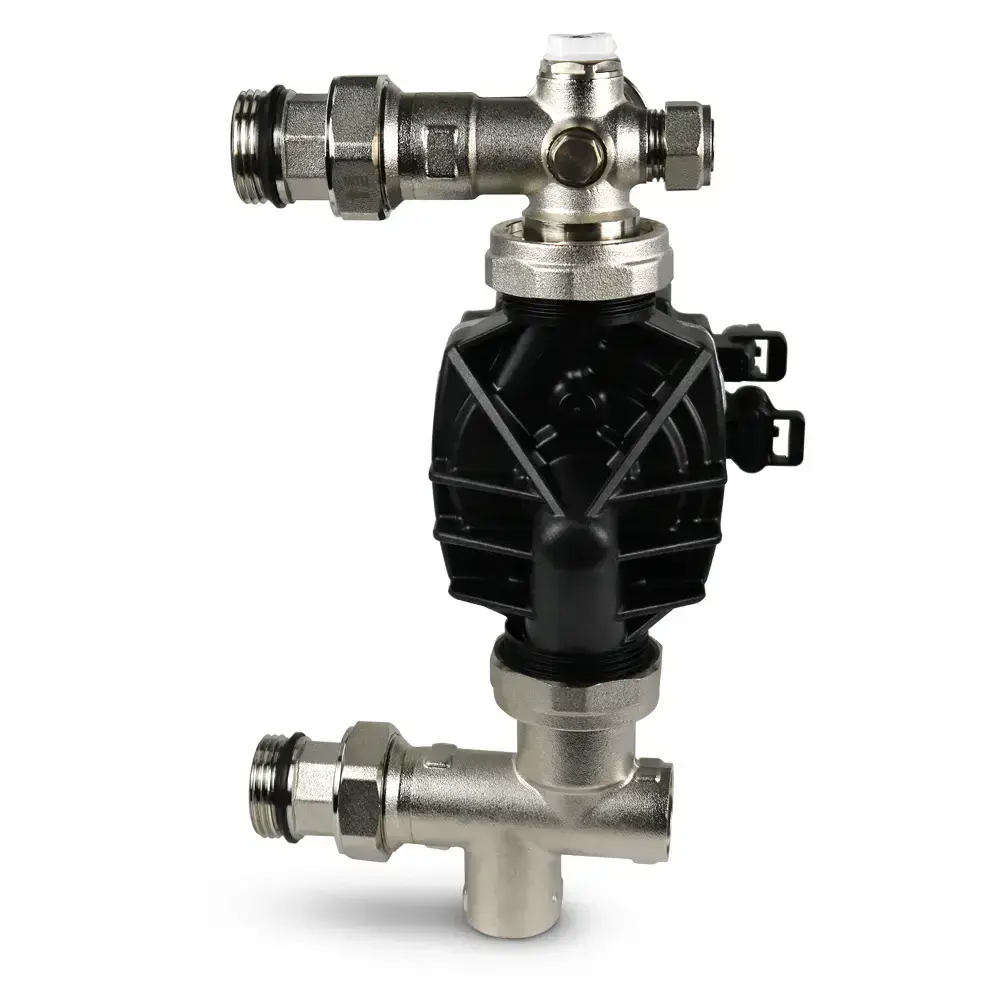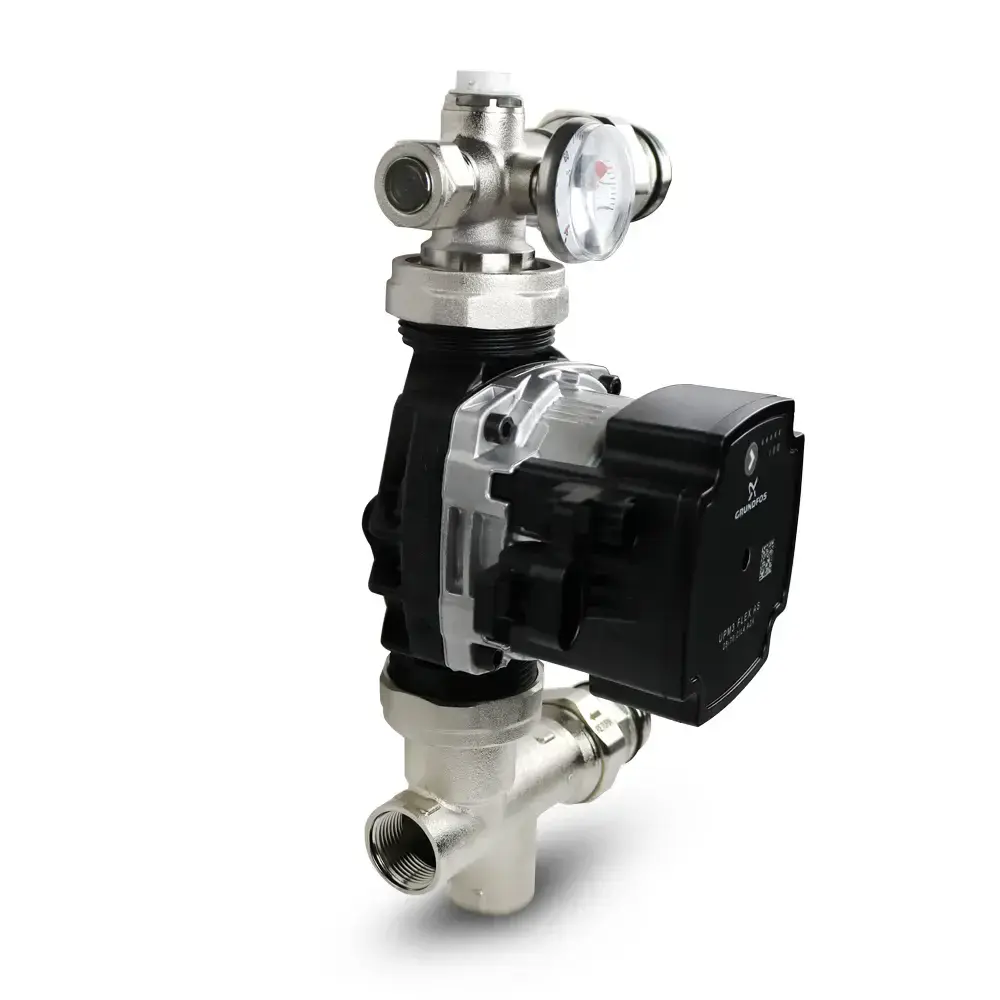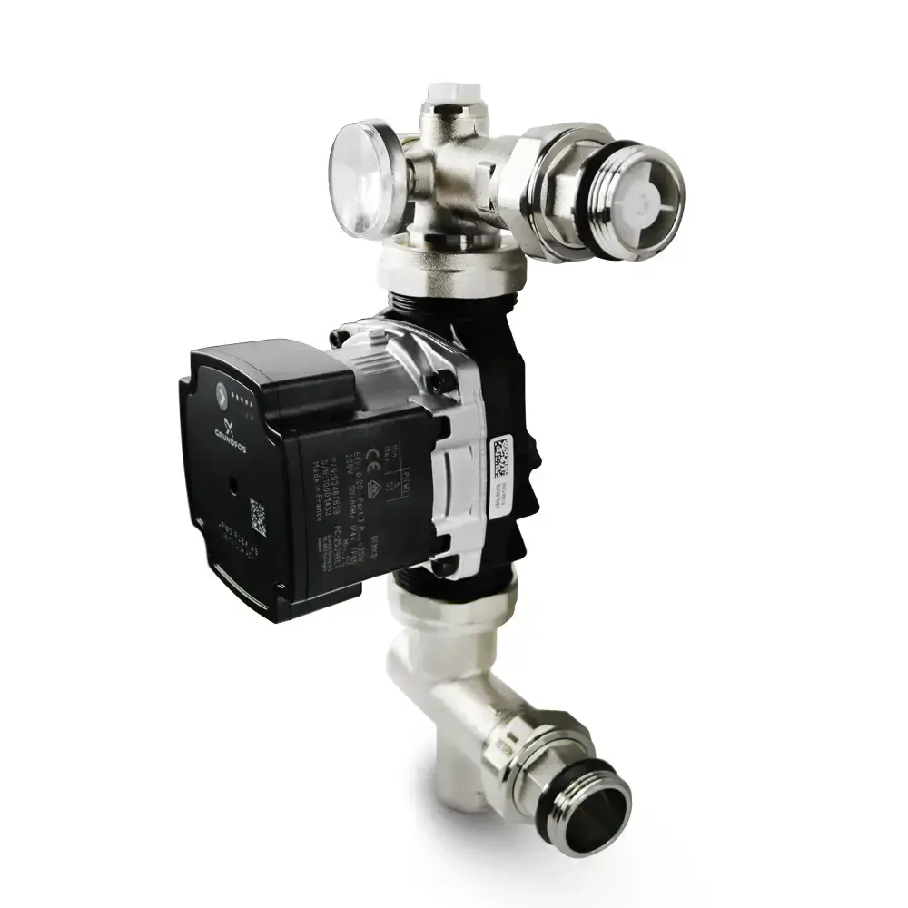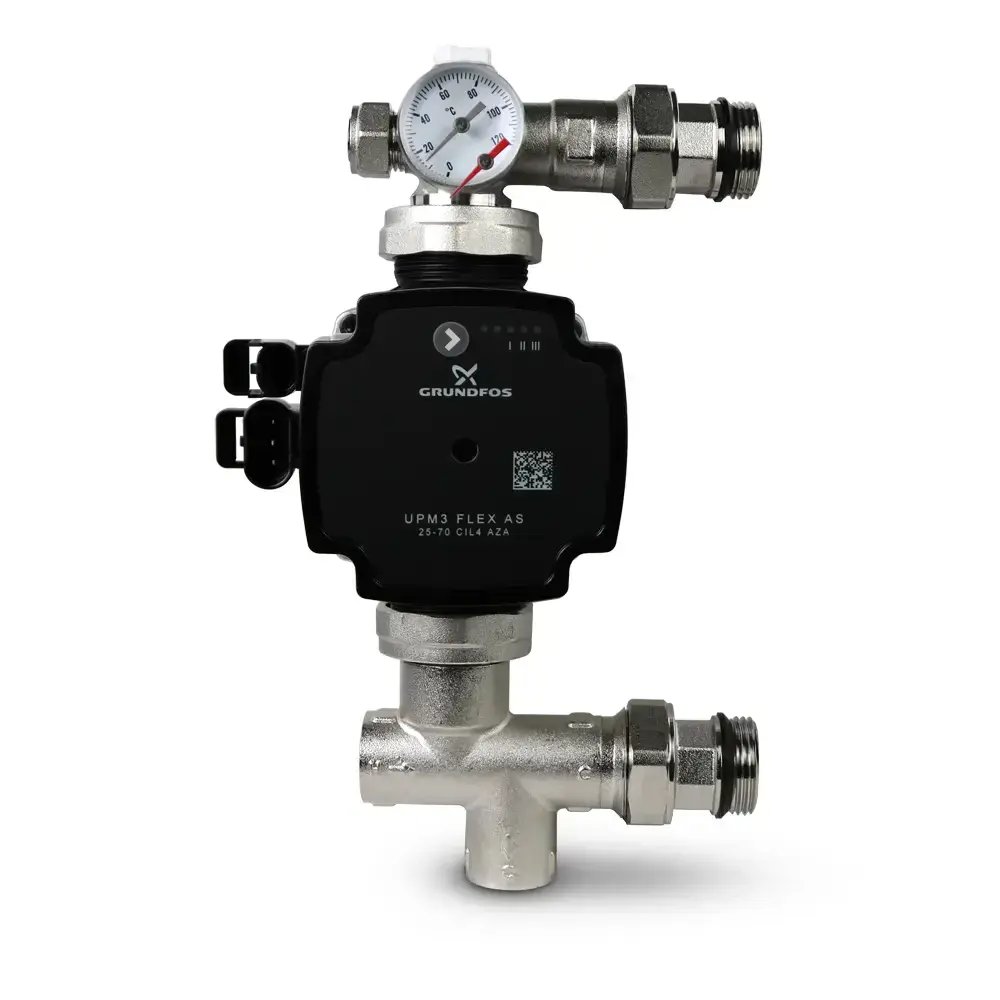 This unit is ideal where thermostatic control is managed elsewhere in the system. Featuring a modular layout with a high-efficiency pump, integrated check valves, and a clear temperature gauge, this pack ensures simple installation and long-term dependability.