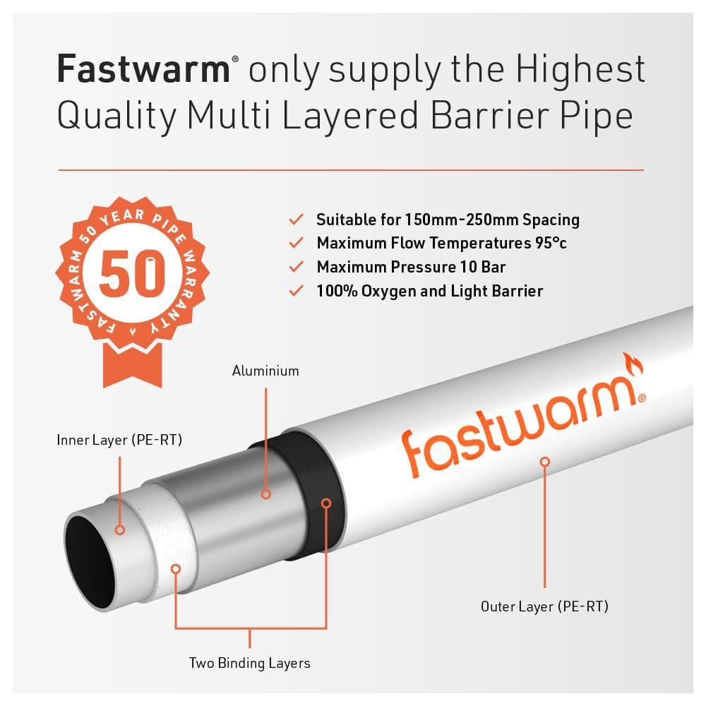 FastWarm® Water Kits include FastWarm® branded products, from pipework, pump, thermostats, manifolds etc as to ensure that seal of quality and approval and reassure the lifetime guarantee that comes with FastWarm® systems. There are many similar systems on the market that are simply unbranded or OEM parts.