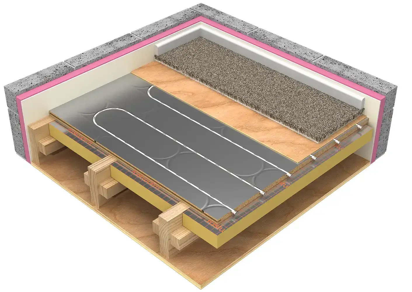Once installed FastWarm® ThermoDeck needs to be covered with a minimum of 6mm ply to provide a solid subfloor to finish the room with your desired floor finish.