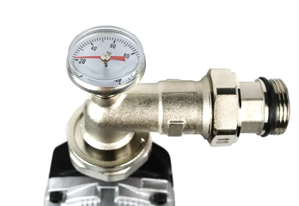 Integrated with a mixing valve, the manifold pump allows for precise temperature regulation by blending hot water from the heat source with cooler return water from the underfloor heating system. This ensures that the water supplied to the floor heating loops maintains the desired temperature, preventing overheating or underheating of the space. The mixing valve can be adjusted manually or controlled electronically, providing flexibility to adapt to changing heating requirements and environmental conditions.