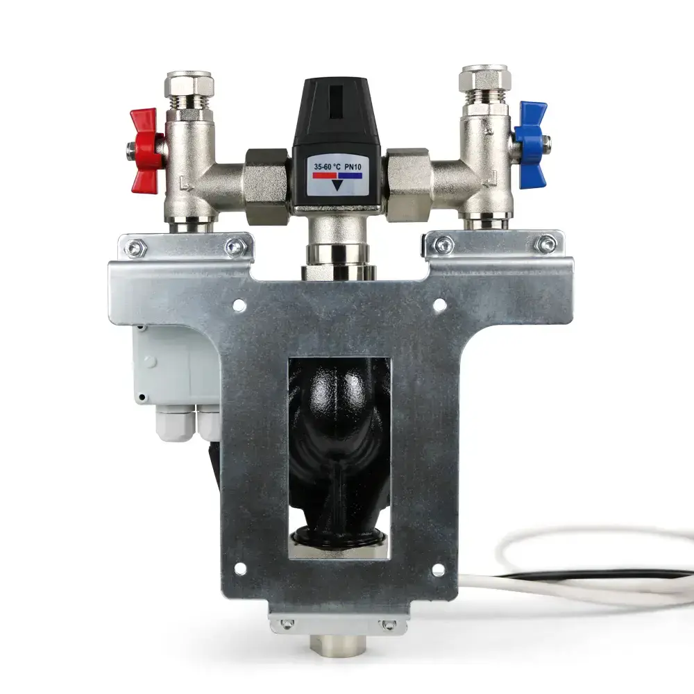 The Grundfos Single Circuit Pump with Mixing Valve Unit is a compact, modular control pack designed to regulate flow and temperature for underfloor heating systems up to 3kW. Perfect for single-zone applications, this unit offers seamless integration with high-temperature radiator systems and provides consistent water temperature and pressure to floor heating circuits. Assembled in the UK and built with premium components, it's engineered for quick installation and dependable performance.