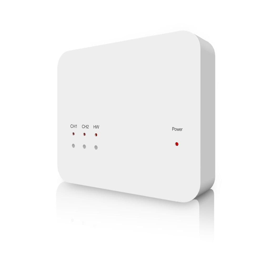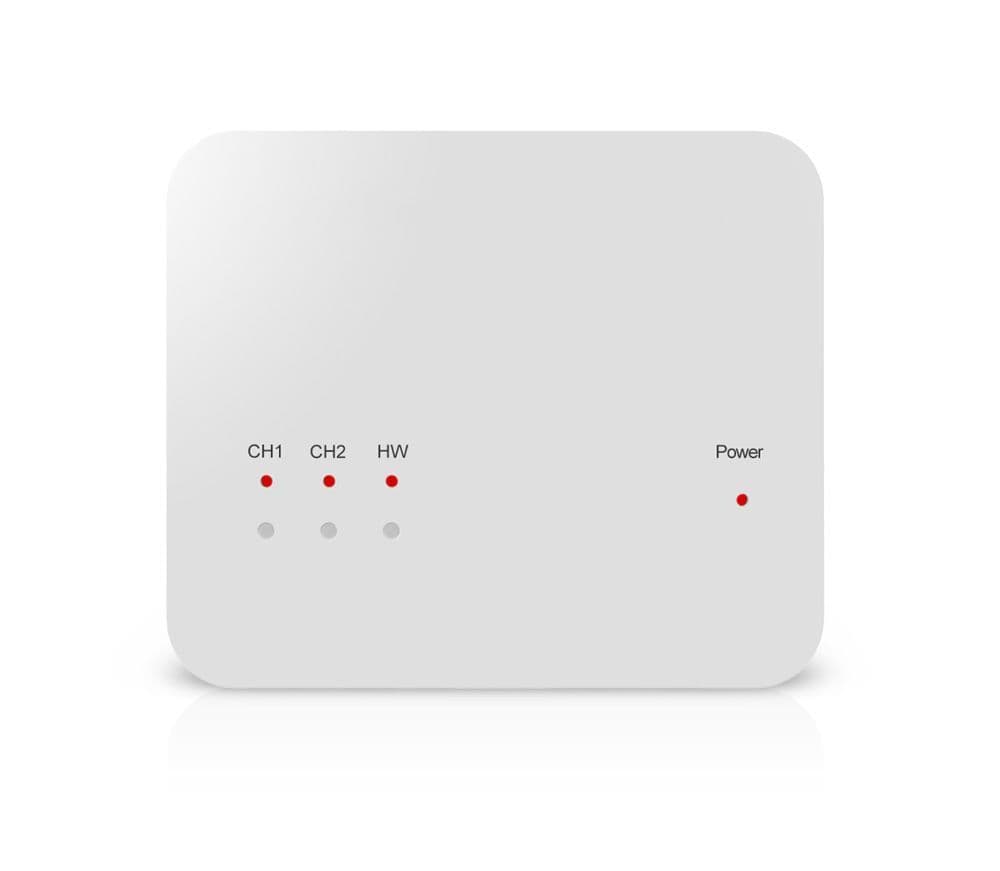 The Heatmiser RF Switch is a versatile two-channel wireless receiver designed to manage heating and hot water systems. It offers the flexibility to control one or two heating zones and one hot water zone, making it suitable for various heating configurations.